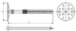 Примечание:Применяется для крепления теплоизоляционных материалов к бетону, полнотелому и пустотелому кирпичу, камню, пенобетону. Состоит из дюбеля с двухсегментной распорной частью, имеющего увеличенную прижимную шайбу диаметром 60мм и гвоздя. Установка производится методом сквозного монтажа, крепление в стене производится забиванием пластикового или стального гвоздя. Различная длина дюбелей позволяет крепить теплоизоляционные материалы различной толщины. В среднем на 1м2 площади теплоизоляции применяется 4-5 дюбелей. При монтаже тяжелых видов утеплителя применяются дюбеля с металлическим гвоздем. |