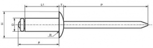 Примечание:Применяется для неразъёмного соединения листового металла, и крепления различных деталей к металлическим конструкциям методом сквозного монтажа. Состоит из распорной втулки и стержня с увеличенным шарообразным концом. При монтаже происходит движение стержня внутрь втулки, вызывая ее смятие. Монтаж производится с помощью специального инструмента, пневматического или механического заклепочника, при этом, доступ необходим с одной стороны. Используется преимущественно в быту и строительстве. |
